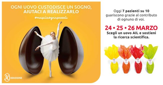 Uova di Pasqua AIL 2023 Cerca la piazza più vicina a te per realizzare i sogni dei pazienti ematologici Ritornano le uova di pasqua AIL 30° edizione Tornano le Uova di Pasqua dell’AIL in tutte le piazze italiane, non mancare! Visita ail.it e cerca la postazione più vicina a te, oppure leggi la lista delle…